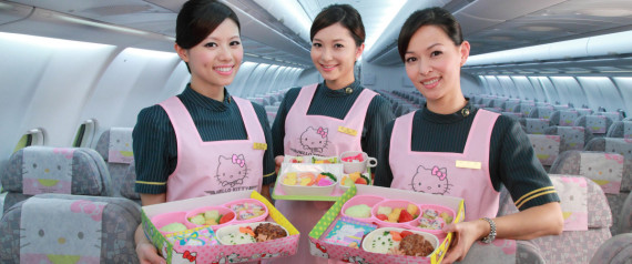 Taiwan-based EVA Air has announced that starting in June, they’ll send their brand-new Hello Kitty jet on a route from Taipei to Houston, meaning a whole new swath of the U.S. will get to see those tricked-out planes with Hello Kitty luggage tags, Hello Kitty pillows, Hello Kitty soap and inflight meals where every last melon slice, cheese morsel and rice patty is shaped like Kitty’s adorable head.