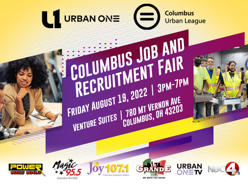 If you are looking for a new job or career please join us at the Urban One Columbus and Columbus Urban League Job and Recruitment Fair on Friday, August 19, 2022, at Venture Suites, 780 Mt. Vernon Ave, Columbus, OH 43203.